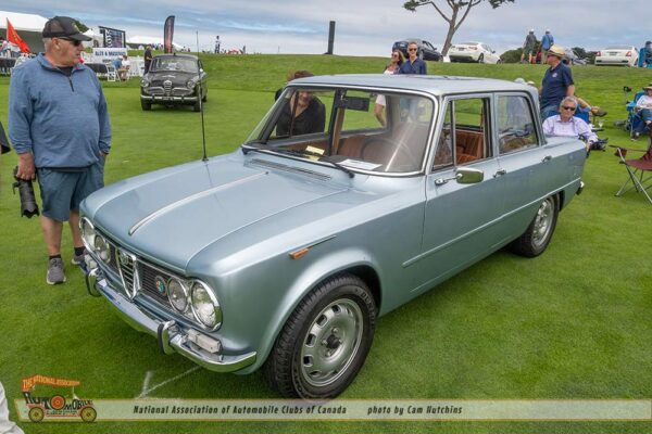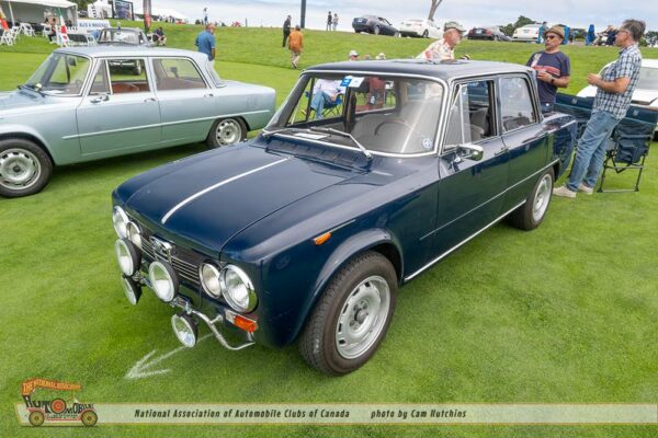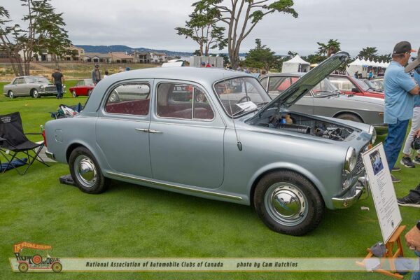 The 1960 Lancia Appia Berlina (Sedan) of Antonio and Nancy Corbelletta was born July 13th 1959 and is part of the series 3 of the Appia produced 1959 to 1963. Painted Celeste Ardenza (Sky Blue) with red leather this 4 door pillarless sedan features suicide rear doors.