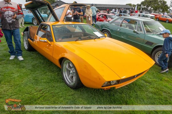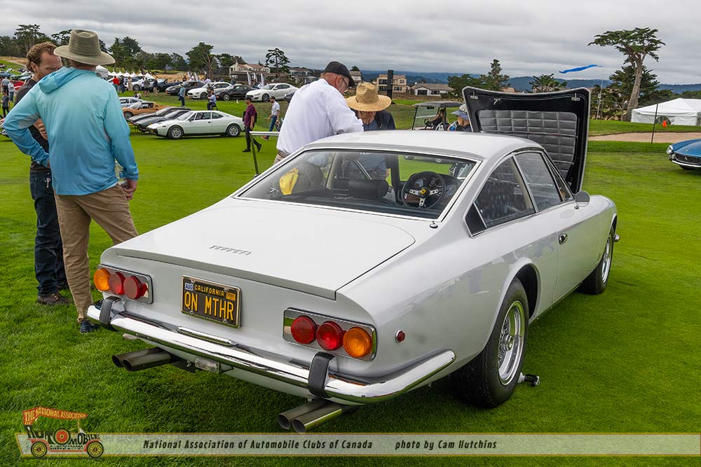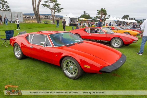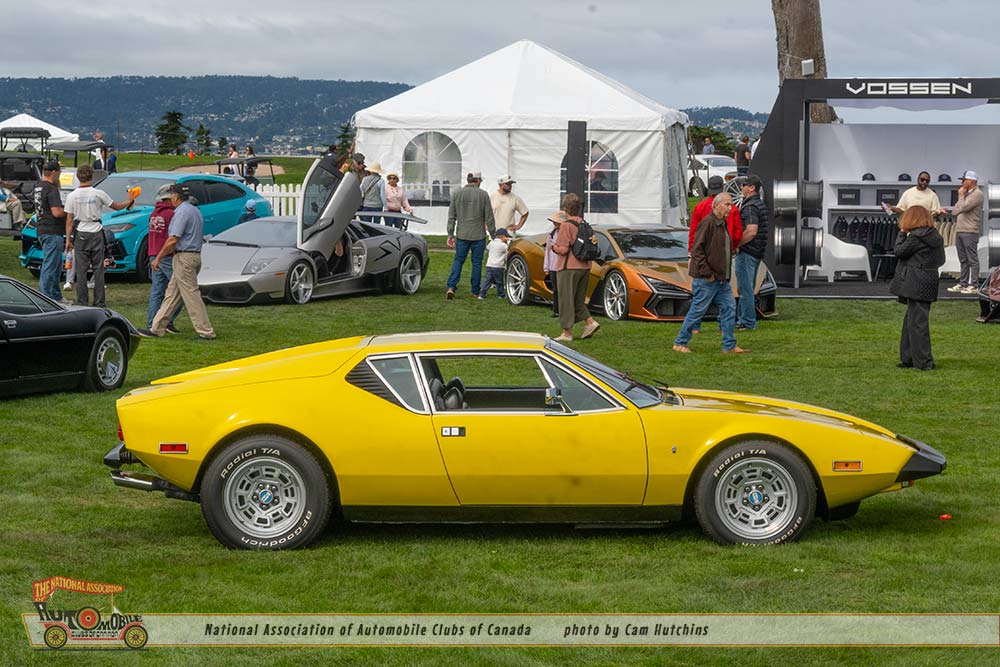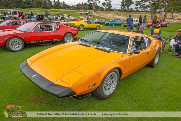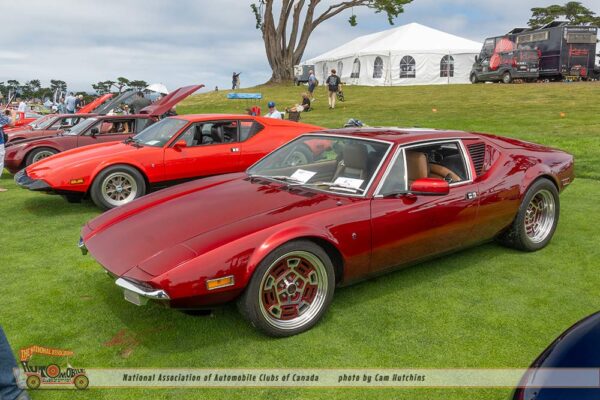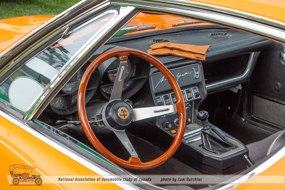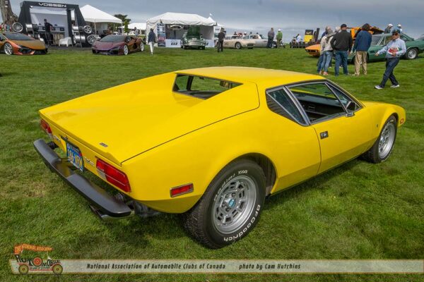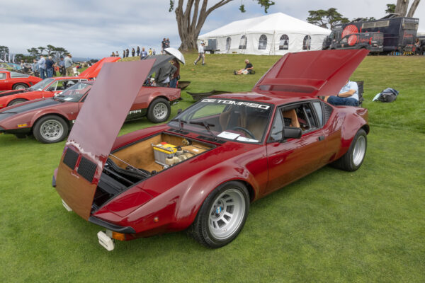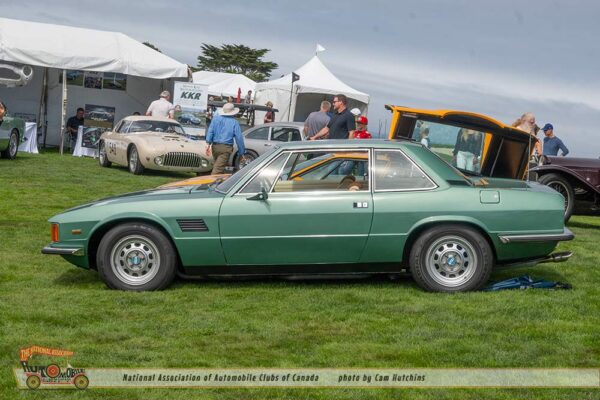 Another bit of wonder comes from De Tomaso. I am astounded to see cars I have never seen before. The 1974 De Tomaso Longchamp owned by Greg A Taylor of Burlingame CA, certainly fit this category. Introduced in 1972 as a grand tourer designed by Tom Tjaarda at Ghia, it featured a long hood, low stance and the 330hp 351 Cleveland Ford V8, and a top speed of 150 mph. This lovely green Longchamp is one of only 9 to exist in the US and only 409 were manufactured.