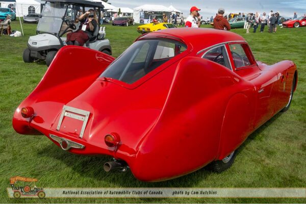 1947 Cisitalia Aerodynamica CMM-001, the Berlina Tipo Mille Miglia “S”. Inspired by the success of the D46 racecars, Cisitalia aggressivelt developes racing cars for the 1947 Mille Miglia. Extensive wind tunnel testing in Turin let this 1,100 cc Ultra Streamlined coupe reach 125 mph on the Turin to Milan highway. It was driven by Piero Taruffi in the 1947 Mille Miglia.