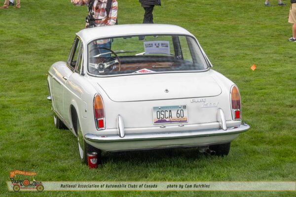 The 1960 Fiat OSCA 1500S Coupe features a 1,491cc DOHC 4-cylinder OSCA engine producing 90 hp (SAE), a 4-speed manual transmission, and a unit body construction from Pininfarina. Weighing approximately 2,040 lbs, it had independent front suspension, with drum brakes, though some 1960 models received front disc brakes.