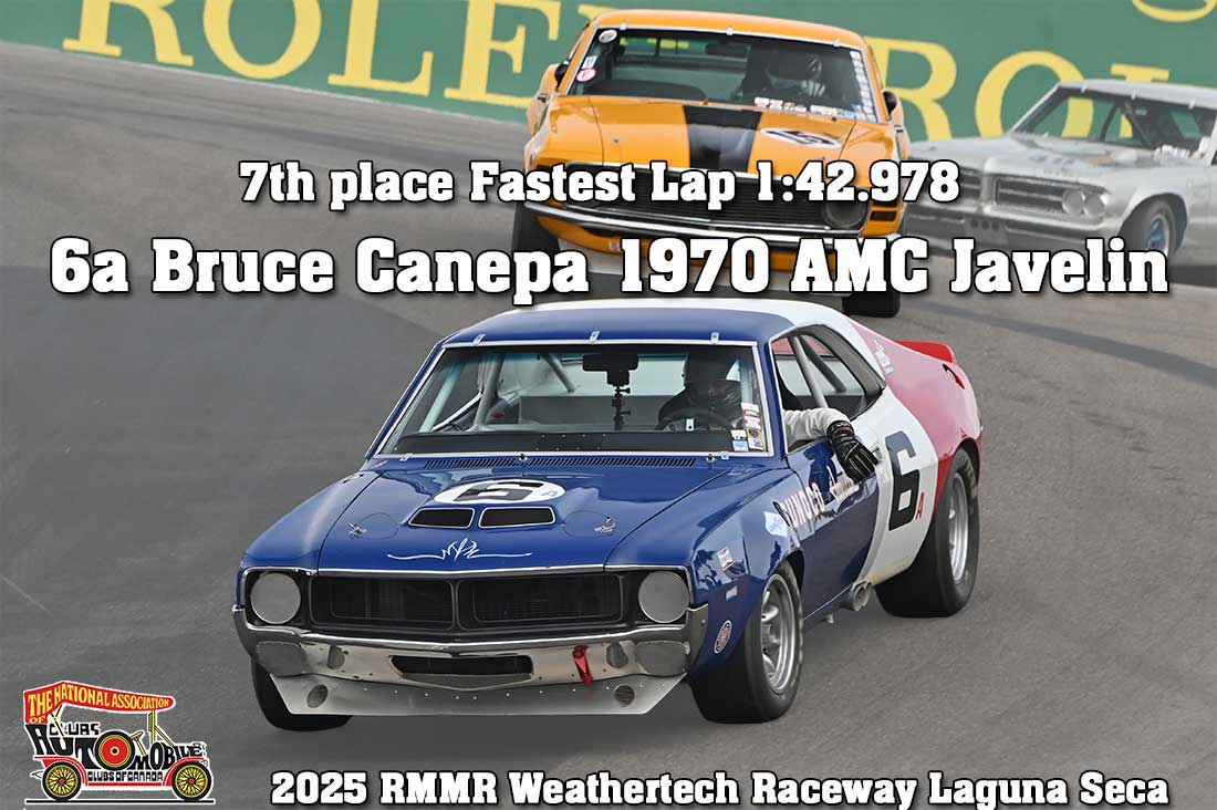 Best Lap by Bruce Canepa 01:42.481 78.336 in his #6a 1970 AMC Javelin.