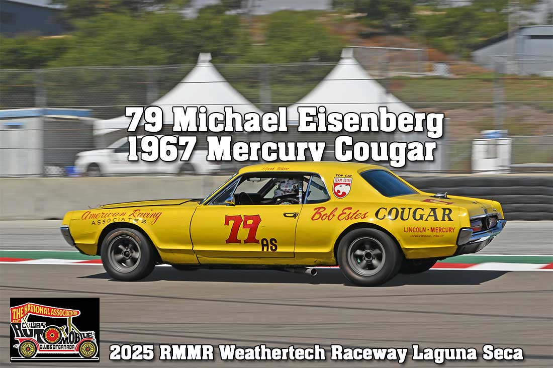 21st place #79 Michael Eisenberg races a 1967 Mercury Cougar that is almost exactly as is came off it’s last race back in the day and wears the paint from that race! Eisenberg lives in Bend OR and his best time was 01:50.850