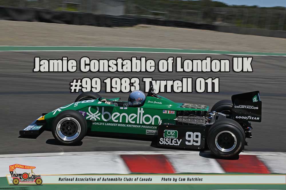 The best lap of 01:21.338 goes to Jamie Constable of London UK in his #99 1983 Tyrrell 011